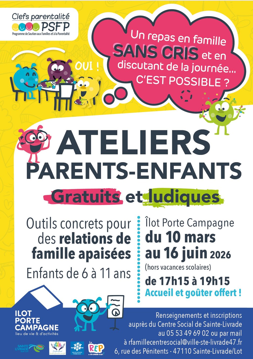Renseignements : 05.53.49.69.02 - rfamillecentresocial@ville-ste-livrade47.fr